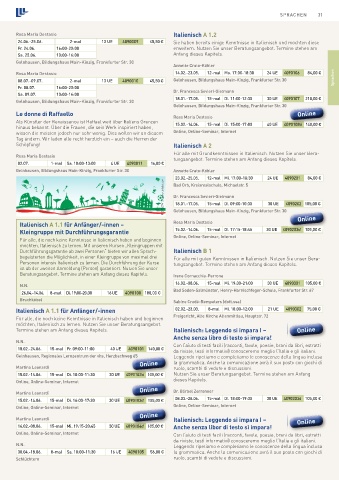 Italienisch A 1.1 für Anfänger/-innen 02.02.-23.03. 8-mal Mi. 10:00-12:00 21 UE 4090302 75,00 €