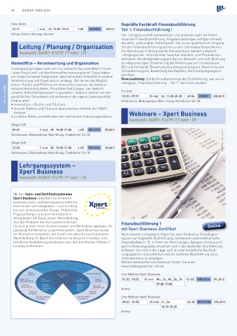 keiten, Rechte und Pflichten im Homeoffice kennen, die Arbeiten Lehrgang „Finanzbuchführung – Teil 1“ vermittelt werden.