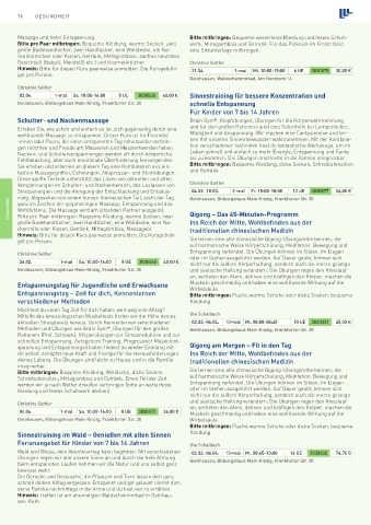 aktuellen Stresslevels heraus. Durch Kennenlernen verschiedener 02.02.-06.04. 10-mal Mi. 08:00-08:45 10 UE 3030331 45,00 €