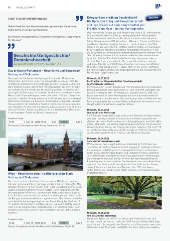 Gesellschaft Gelnhausen, Bildungshaus Main-Kinzig, Frankfurter Str. 30 9,00 € erster Luftangriffe. Der Vortrag zeigt anhand persönlicher Schicksale Ver-