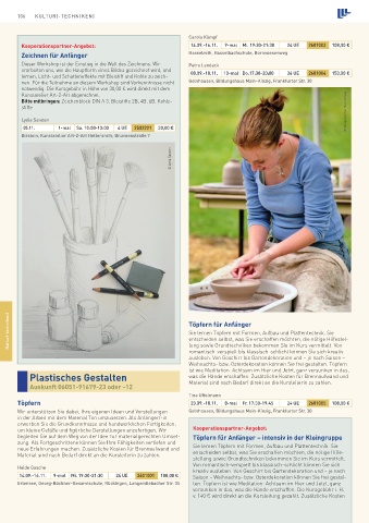 Töpfern 23.09.-18.11. 8-mal Fr. 17:30-19:45 24 UE 2601005 108,00 €
