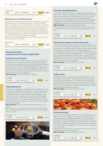 10.09. 1-mal Sa. 10:00-14:30 6 UE 1140251 30,00 € Die Thüringer Küche besticht durch einfache und schmackhafte Ge-