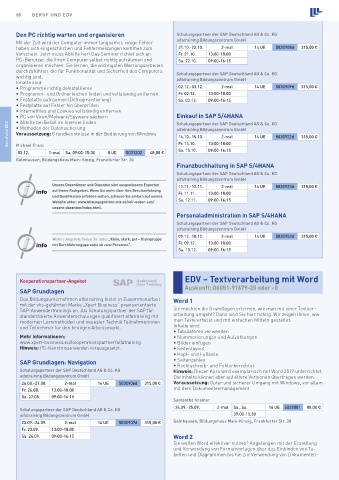 Schulungspartner der SAP Deutschland AG & Co. KG 24.09.-25.09. 2-mal Sa., So. 16 UE 5032001 88,00 €