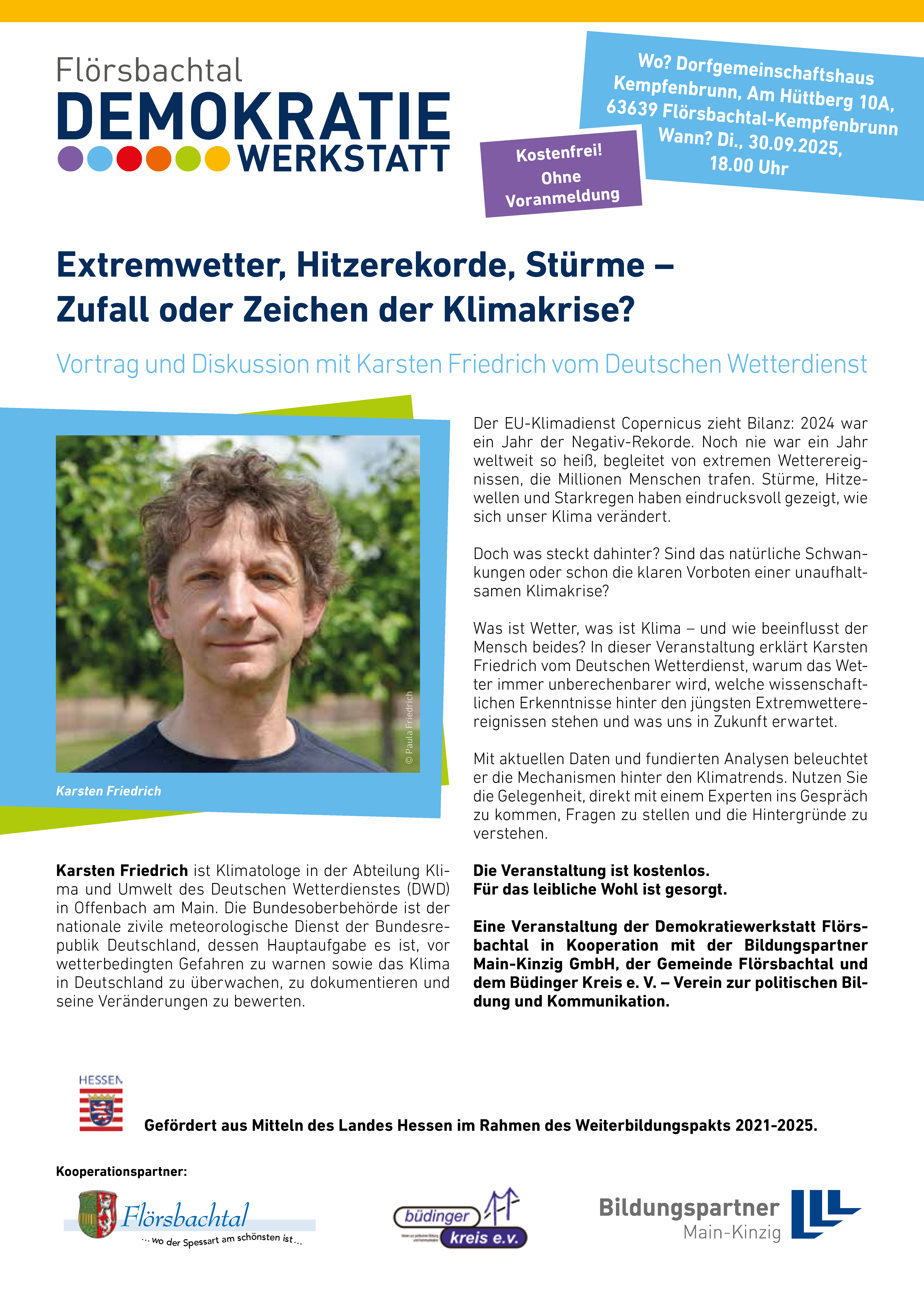 Eine Veranstaltung der Bildungspartner Main-Kinzig GmbH und der Demokratiewerkstatt Flörsbachtal in Kooperation mit der Gemeinde Flörsbachtal und dem Büdinger Kreis e. V.