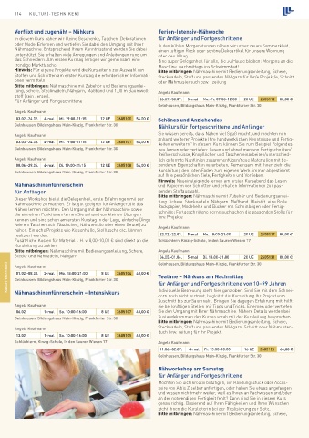 06.02. 1-mal Sa. 10:00-16:00 8 UE 2605107 40,00 € Sie den Umgang mit Ihrer Nähmaschine. Nähere Details werden bei