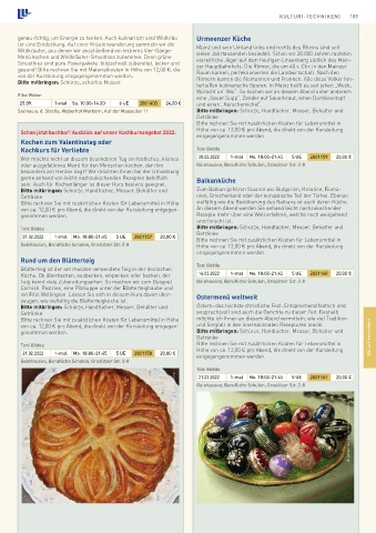 Küche. Ob überbacken, ausbacken, einpacken oder backen, der 14.03.2022 1-mal Mo. 18:00-21:45 5 UE 2801160 20,00 €