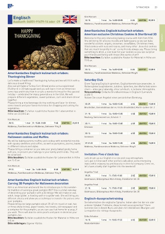 Amerikanisches Englisch kulinarisch erleben: 03.12. 1-mal Sa. 10:00-13:00 4 UE 4069204 15,00 €