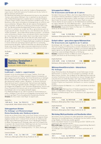 tionen für Kleidung hergestellt werden. Anfänger/-innen lernen die Zusätzliche Kosten für Material i. H. v. 14,00 € sind direkt an die Kurs-