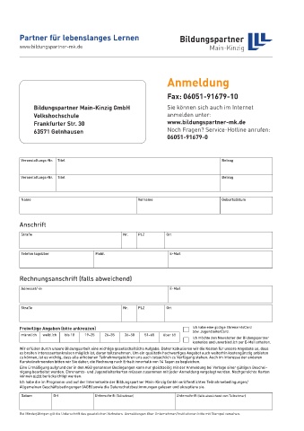 Ich habe die im Programm und auf der Internetseite der Bildungspartner Main-Kinzig GmbH veröffentlichten Teilnahmebedingungen/