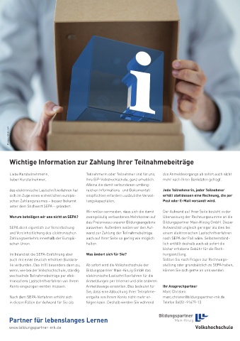 Wichtige Information zur Zahlung Ihrer Teilnahmebeiträge