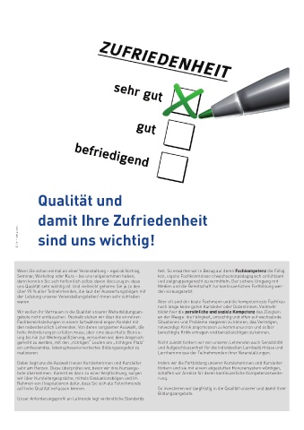 Wir wollen Ihr Vertrauen in die Qualität unserer Weiterbildungsan- bildet hier die persönliche und soziale Kompetenz das Zünglein