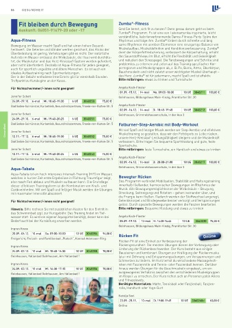 24.09.-03.12. 10-mal Mi. 16:30-17:15 10 UE 3040056 70,00 € hinaus werden Übungen für die Bauchmuskeln eingebaut, um ein